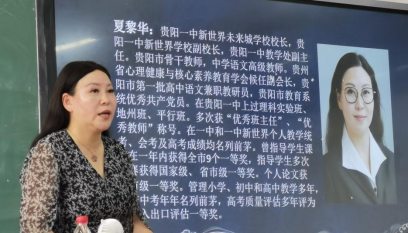 6月24日,博雅楼3705教室,公司邀请贵阳一中新世界未来城公司董事长、贵阳一中新世界公司副董事长、贵阳一中教学处副主任、贵阳市骨干教师、中学语文高级教师夏黎华老师,为2018级汉语言文学班级全体 94位同学作了一场题为“十年育树,百年育人”的教学经验分享会。