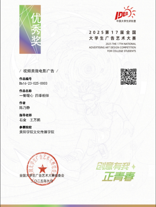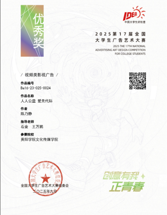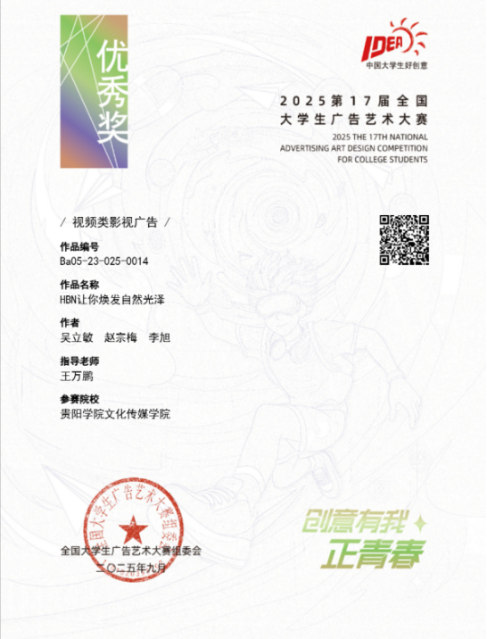 近日,2025年第17届全国老员工广告艺术大赛获奖结果揭晓,永利23411集团再传捷报。在本次赛事中,广播电视学专业学子凭借扎实的专业功底与创新创意的思维,共斩获了5项全国优秀奖 ,展现出广电学子强劲的实践创作实力。