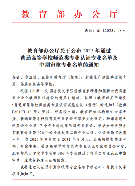近日经高校申请、教育评估机构组织专家考查、普通高等公司师范类专业认证专家委员会审定,在9月23日通过名单中,本校永利23411集团以及教育科学公司共两个专业通过了师范类专业认证中期审核,继续保持认证有效期。