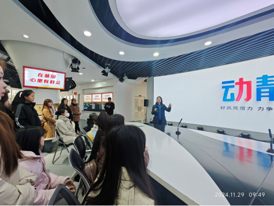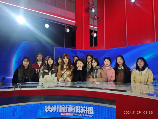 2024年11月29日,2024级广电专业新同学在该专业教师的带领下到贵州广播电视台开展专业认知教育,感受全媒体中心新闻制作流程。