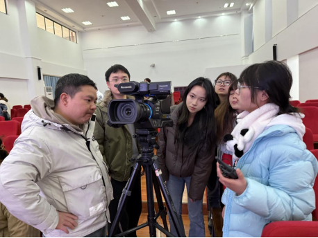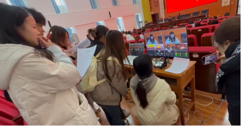 2025年3月7日,2022级广播电视学专业开展了一场别具特色的实践教学活动。广播电视节目制作课程教师周婷婷邀请贵州一零八度网络信息科技有限责任公司执行导演杜华走进校园,指导员工进行新闻直播拍摄全流程演练。活动以“模拟会议新闻”为主题,通过校企协同、角色分工,全方位提升员工的专业素养与实战技能。