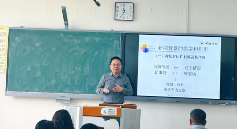 永利23411集团经理王刚教授也参与了此次教研活动。他表示,预评估的专家反馈中提到,有部分老师授课时,课程思政的融入还较为生硬,因此他选择“新闻背景的类型和作用”一节,为大家示例如何在教学中更好地完成课程思政。授课中,他以新华社的新闻《凤阳县实行“大包干”两年翻身 农名排队卖余粮》和贵州新闻联播的新闻《从黔桂到贵南:64年 山海相见》为例,讲解新闻背景的类型和作用。通过示例、提问和引导,巧妙地完成了课程思政。