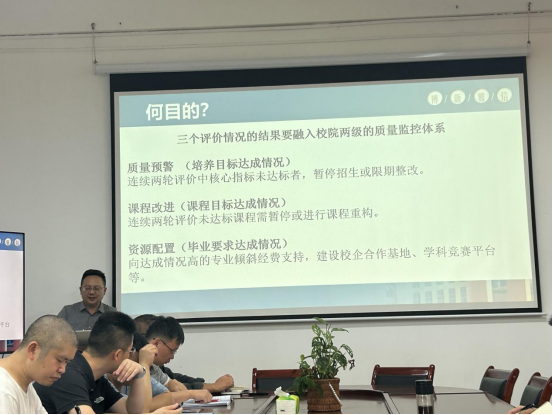 培训会上,王刚经理以“以评促建、以评促改”为主线,系统阐释了“培养目标达成情况”“课程目标达成情况”和“毕业要求达成情况”三个核心指标的内在逻辑与实践要求。王刚经理结合公司专业特色,通过案例分析、数据对比等方式,深入解读了如何将评估指标转化为教学改进的具体行动,推动人才培养质量持续提升。