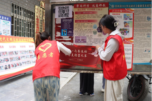 普通话推广团在沿河县社区张贴海报