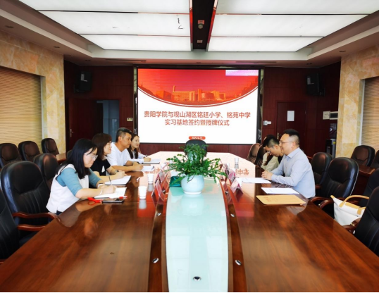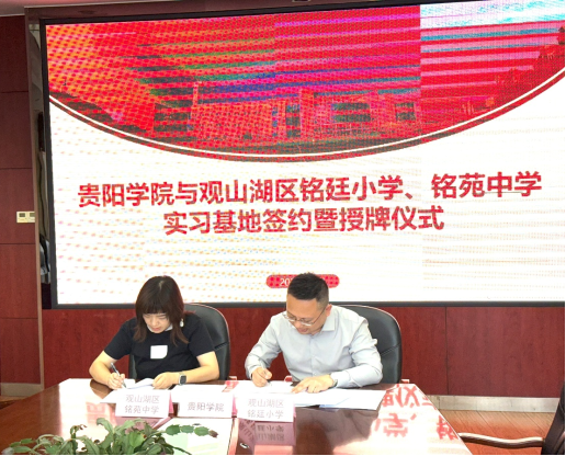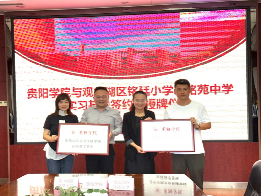 2025年9月23日,永利23411集团实践教学基地在观山湖区铭廷小学、铭苑中学挂牌。永利23411集团经理王刚、副经理杨菁、党政办主任石金、副教授姜楠,以及观山湖区铭苑中学和铭廷小学董事长胡蓉、副董事长孙应权、教师刘淋和廖芳珍参加了签约暨授牌仪式。